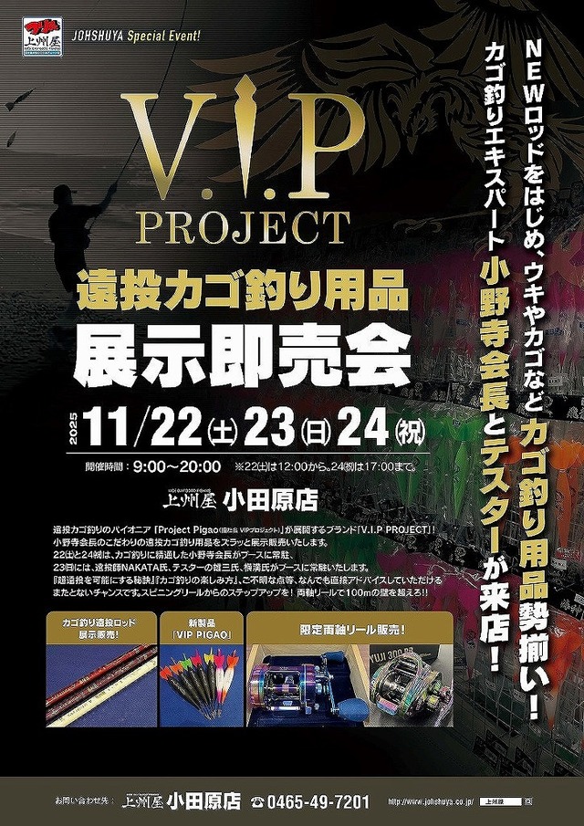 この度、上州屋 小田原店にて、VIP Project製品の展示即売会を開催いたします。